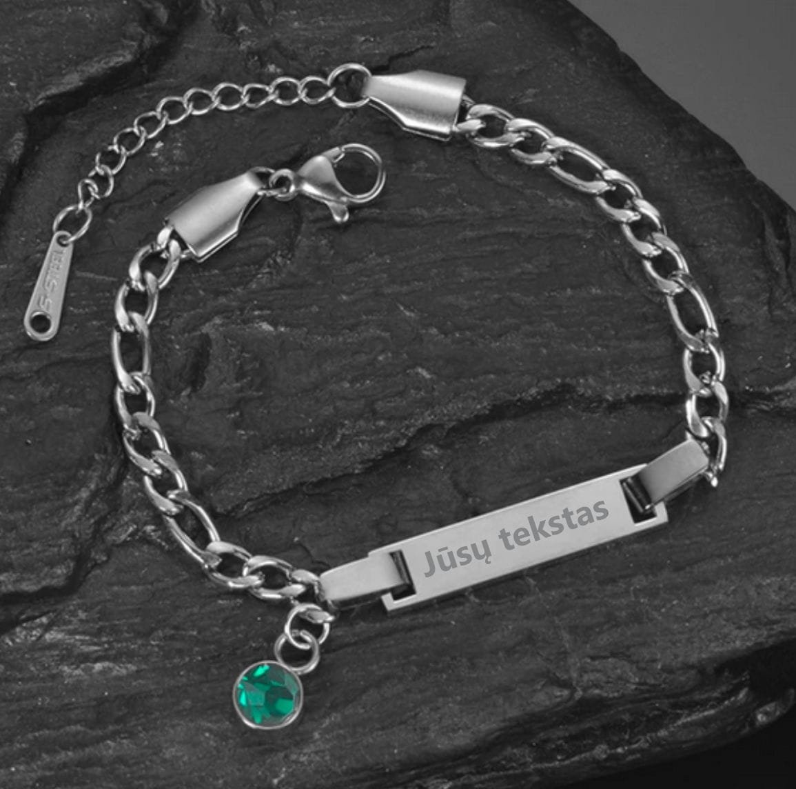 9,60 €Nerūdijančio plieno sidabro spalvos apyrankė su žaliu kalnų krištolo akmenuku.