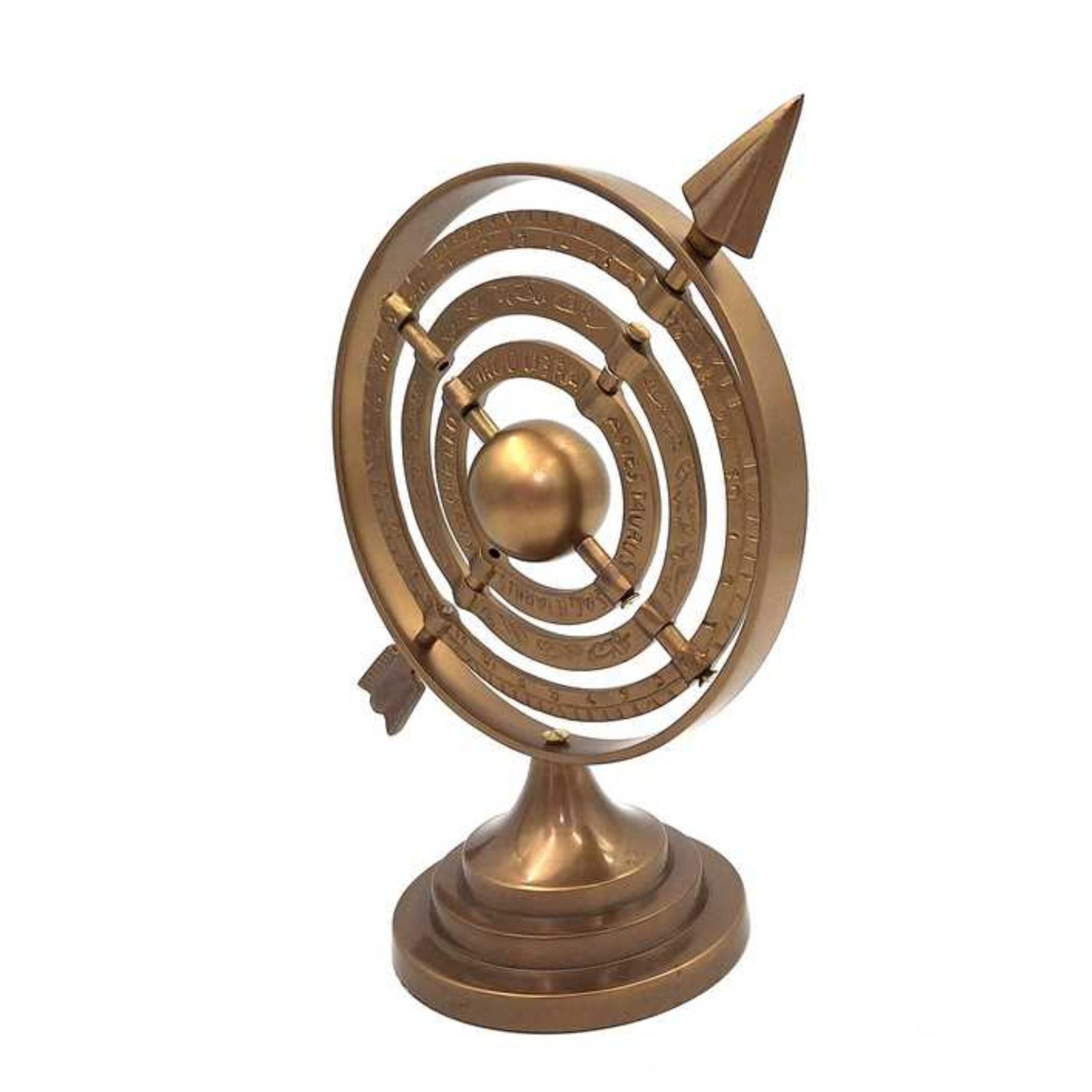 Retro stiliaus rodyklės astrolabė iš aliuminio puikiai tiks kaip stalo, lentynos ar židinio puošmena.