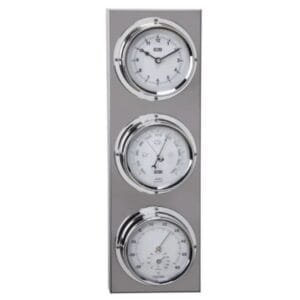 Tai klasikinis oro barometras su matomu mechanizmu. Prietaisas sumontuotas žalvariniame rėmelyje ant riešutmedžio spalvos medinio pagrindo. Smėlio spalvos ciferblatas kontrastuoja su juodomis raidėmis anglų kalba.