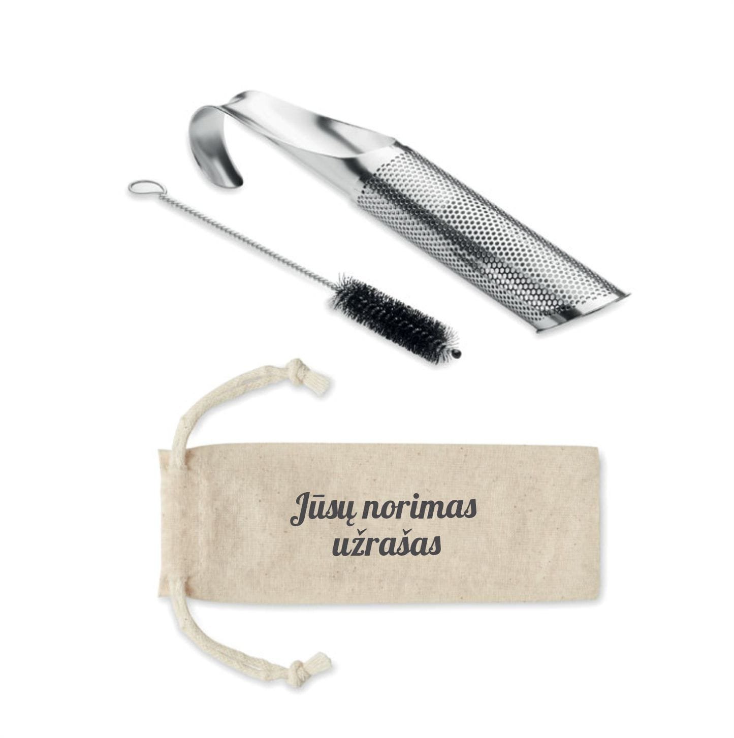 Arbatos sietelis su norimu užrašu ant maišelio.