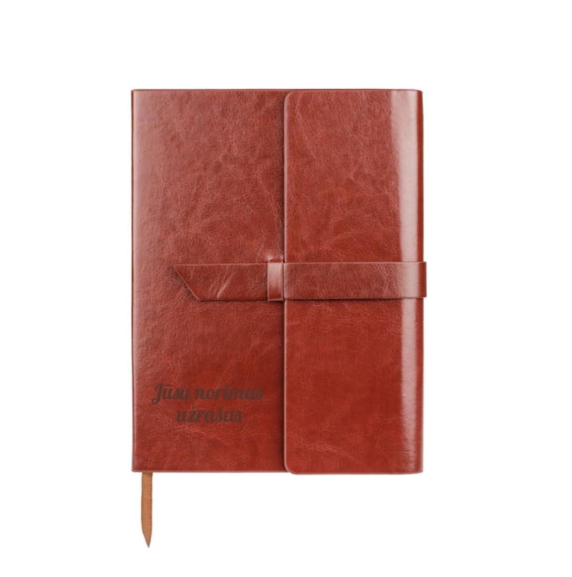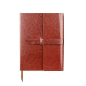 Tamsiai ruda užrašų knygelė.