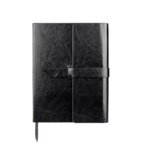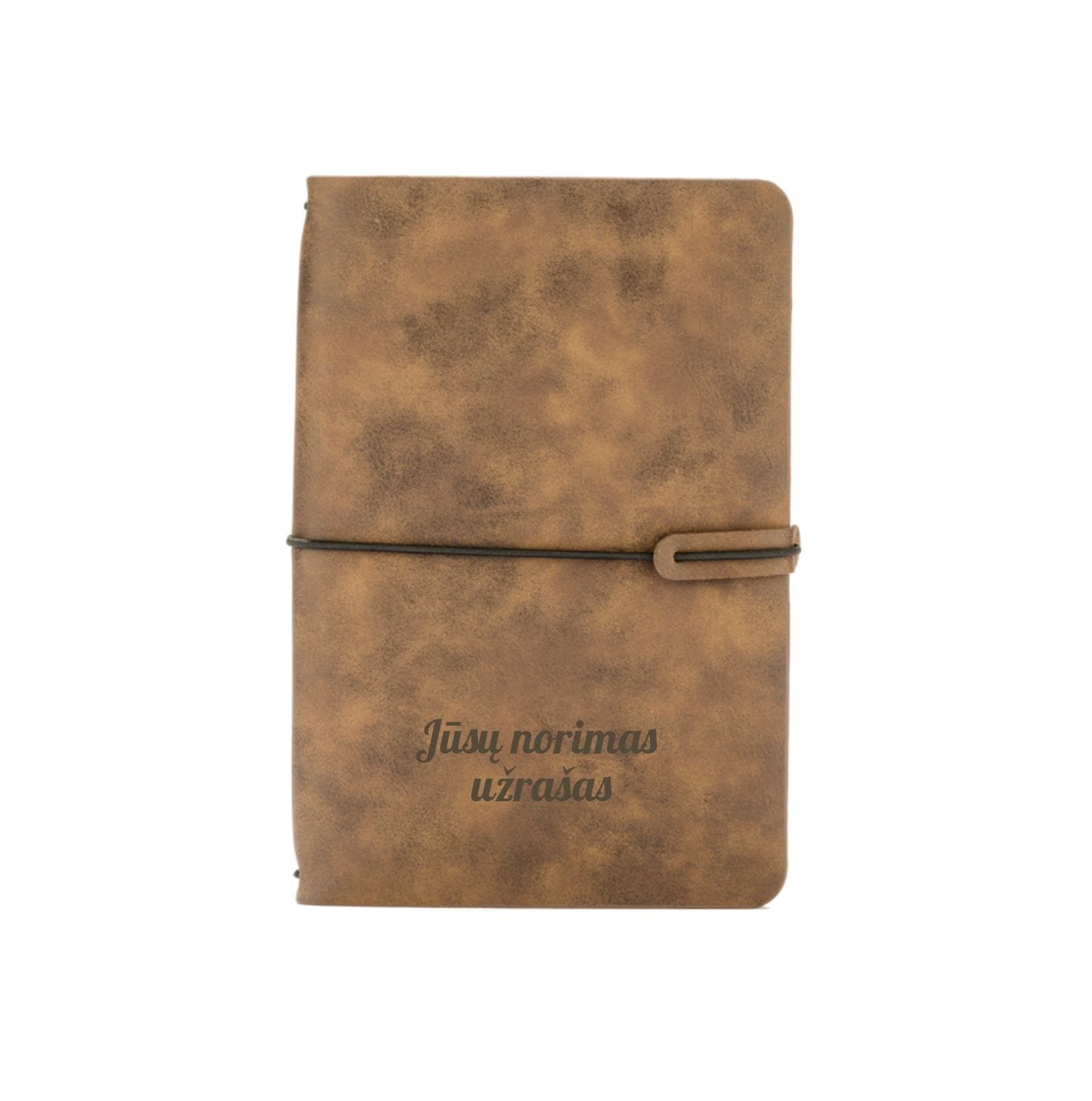 A5 formato užrašų knygutė su viršeliu iš PVC odos ir graviruotu norimu užrašu.