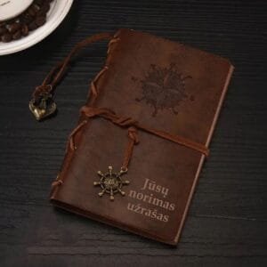 Piratų stiliaus užrašų knygelė su graviruotu vardu ar norimu užrašu.