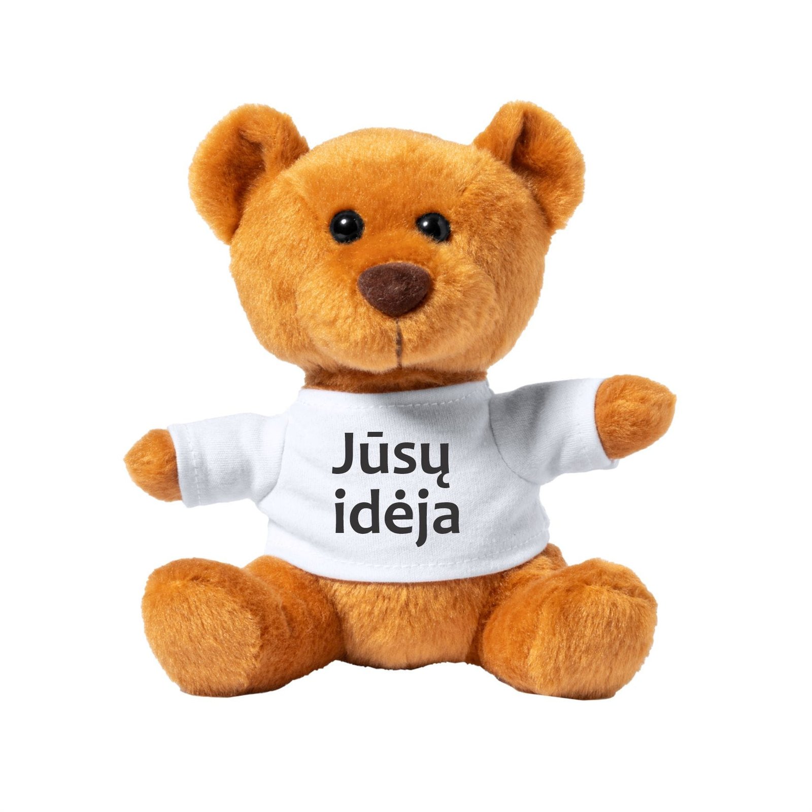 Pliušinis meškiukas su marškinėliais ant kurių galime uždėti Jūsų norimą užrašą ar paveiksliuką.
