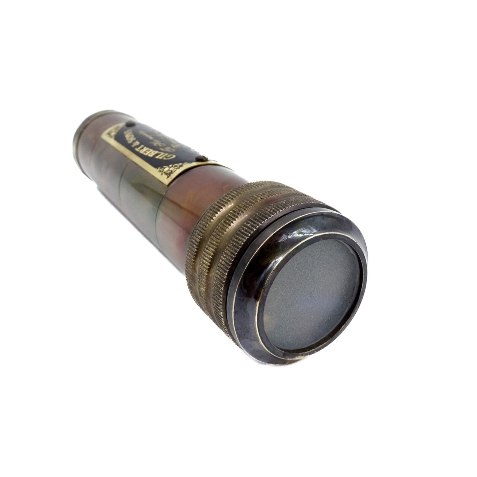 Kaleidoskopo dėklas pagamintas iš žalvario ir odos, kas suteikia daiktui retro pojūtį. Kartu pateikiamas odinis dėklas, apsaugantis kaleidoskopą.