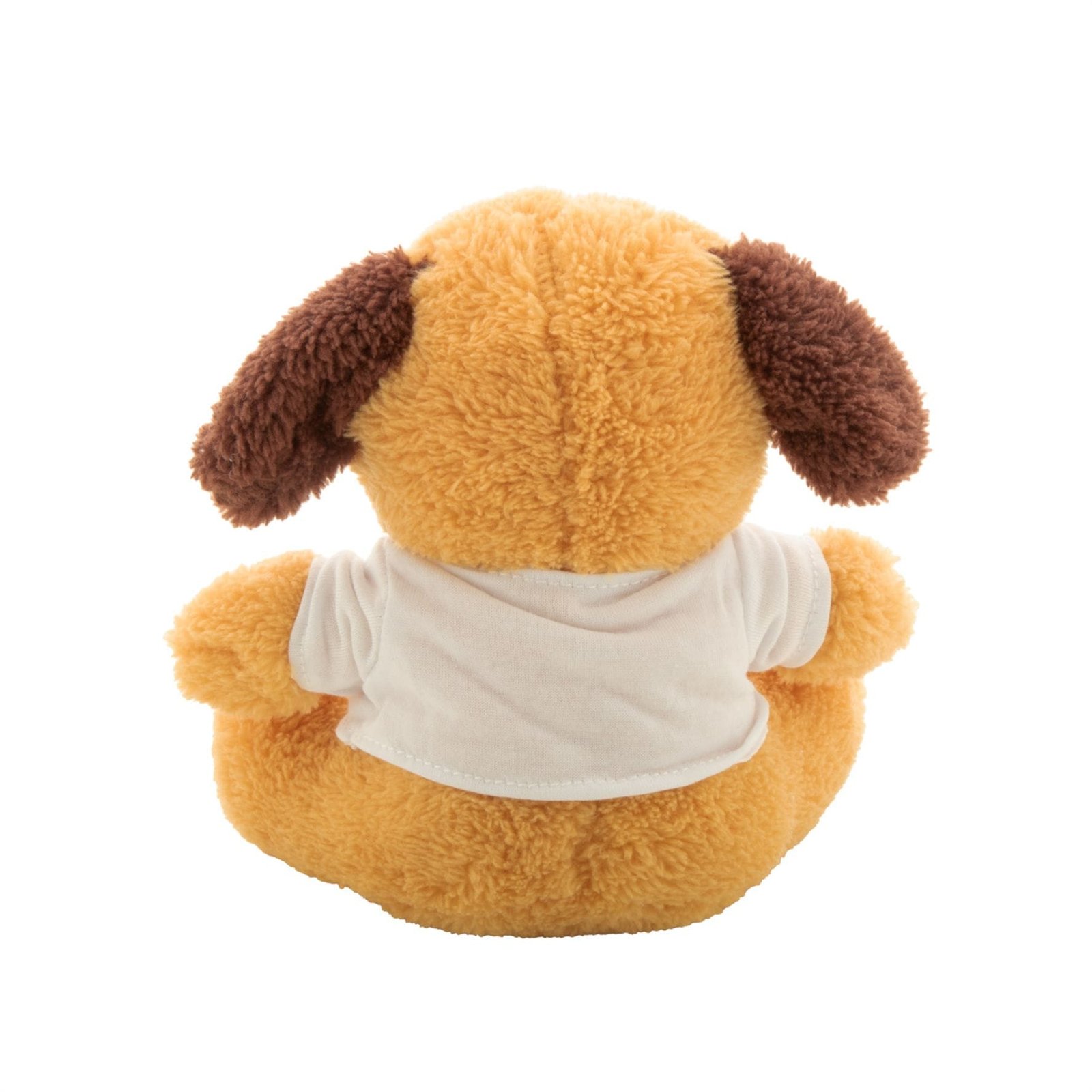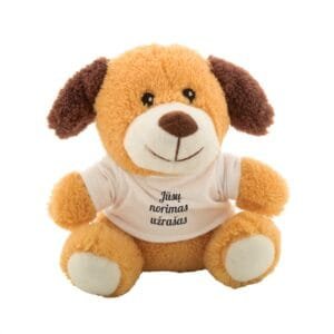 Pliušinis šuniukas su marškinėliais.