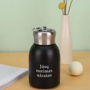 Nerūdijančio plieno kavos samtelis su graviruotu norimu užrašu.