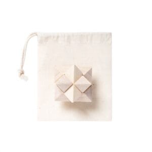 Medinė magiška dėlionė medvilniniame maišelyje.