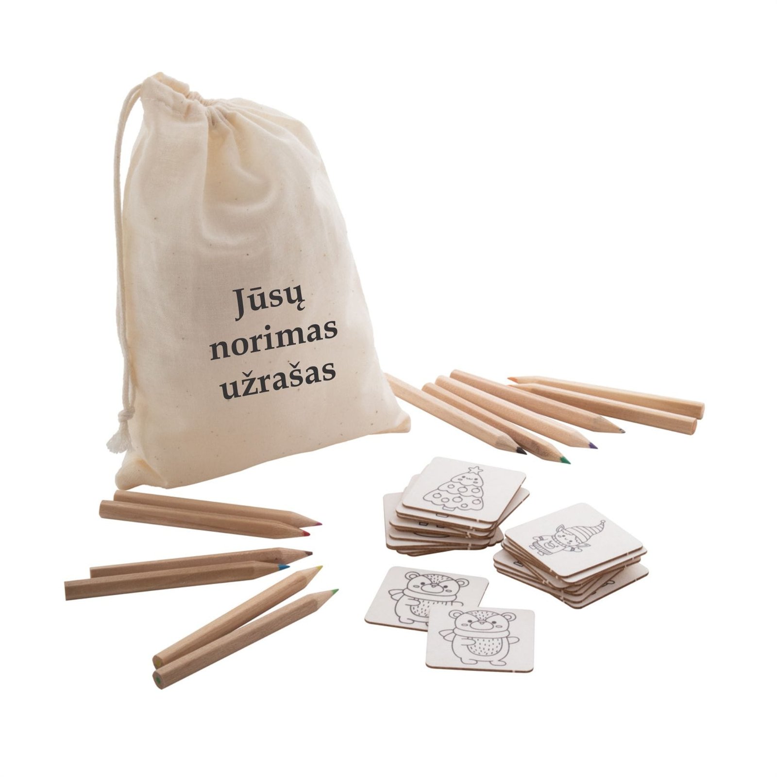 Rinkinys spalvinimui su 24 kortelėm ir 12 spalvotų pieštukų.