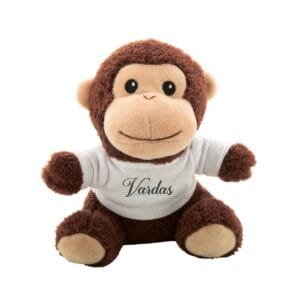 Pliušinė beždžionė su marškinėliais.