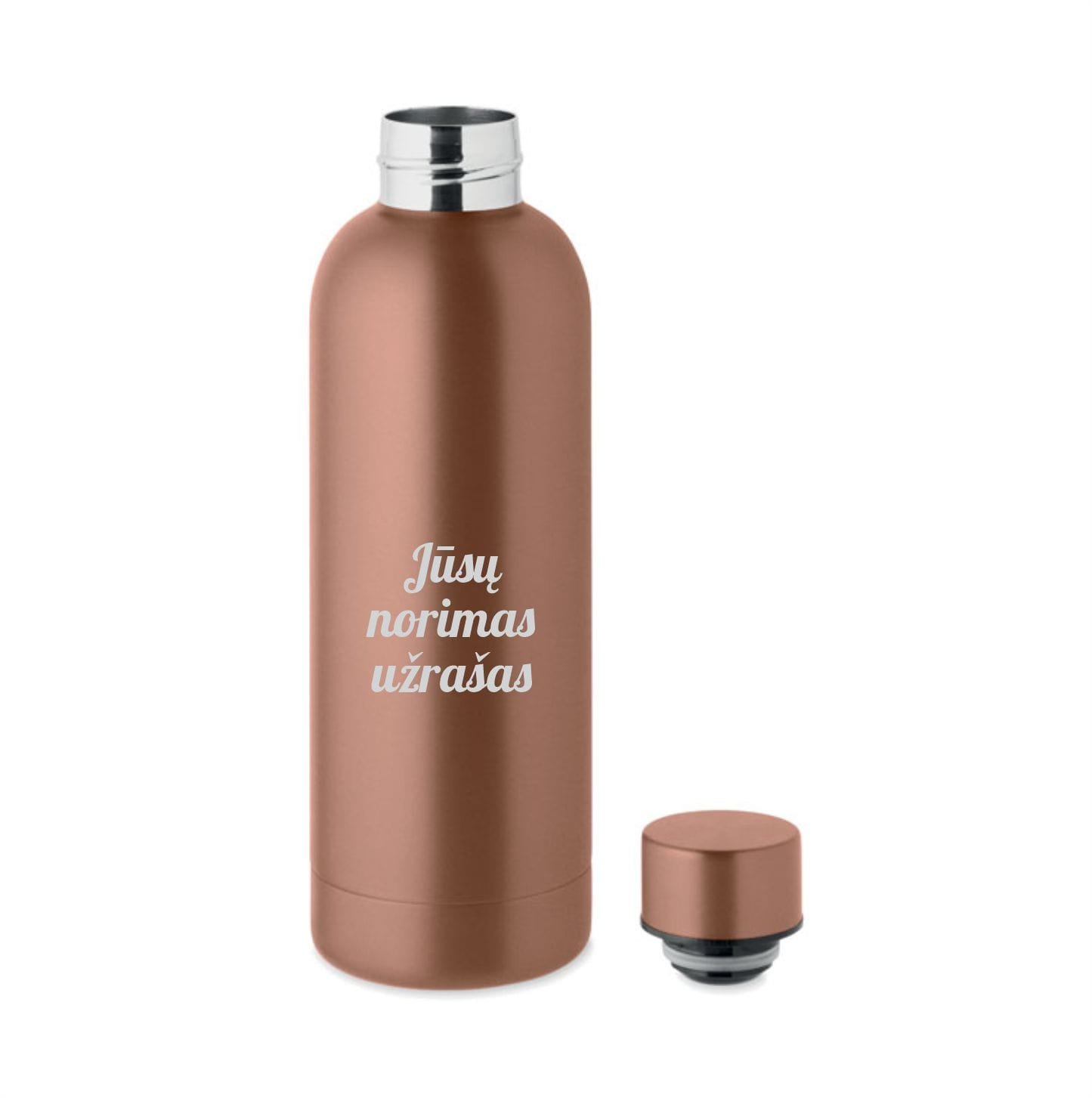 Termo butelis su graviruotu vardu, užrašu ar logotipu – tai puiki dovana gimtadienio proga.
