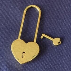 Aukso spalvos spyna su raktu.