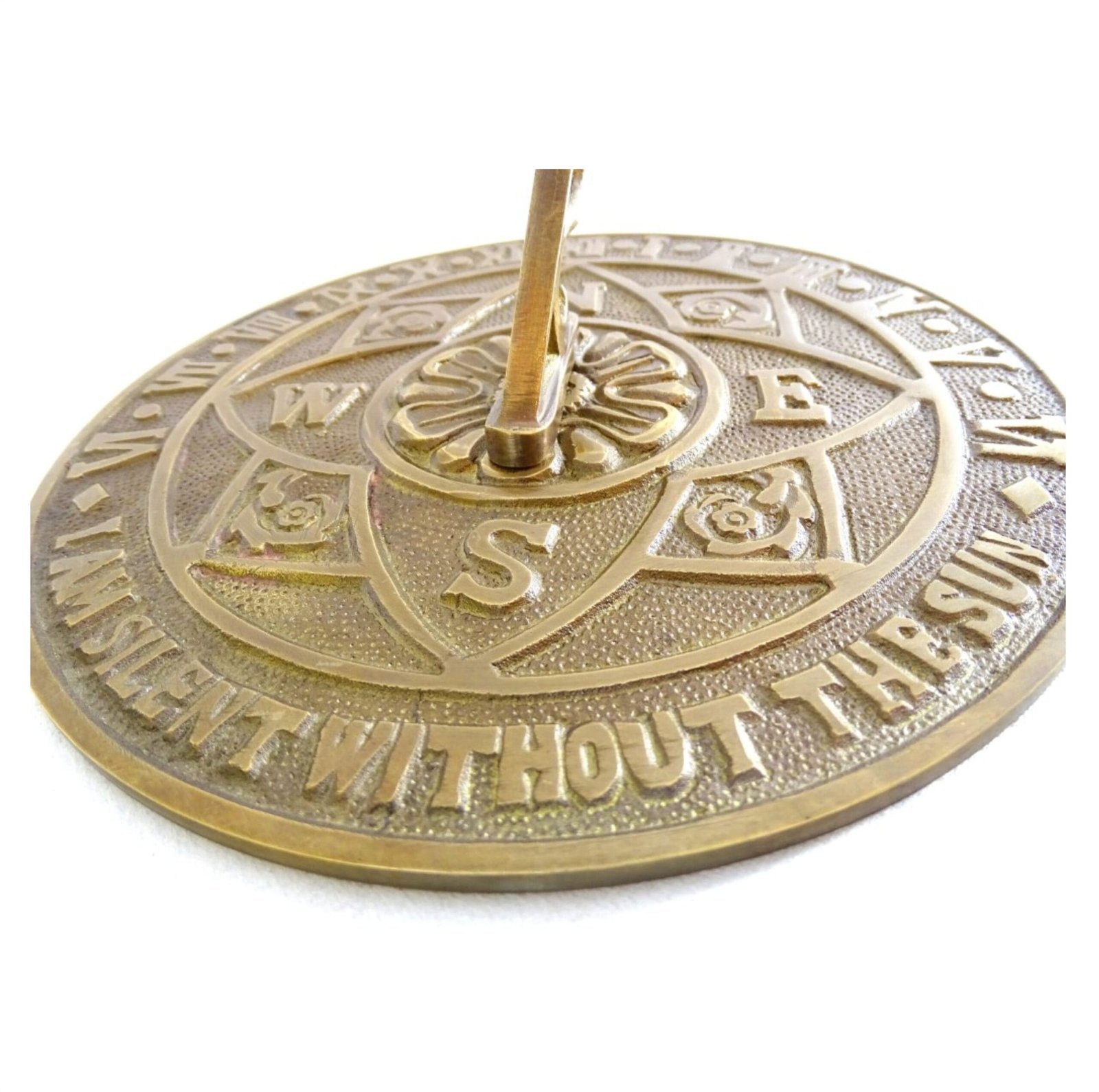 Laikrodžio ciferblatas yra plokščias apskritas paviršius su gėlių dekoracijomis, vėjo rožė, romėniški skaitmenys, žymintys valandas ir užrašas: „Aš tyliu be saulės.“ Kampu pastatytas gnomonas meta šešėlį vietiniam laikui.
